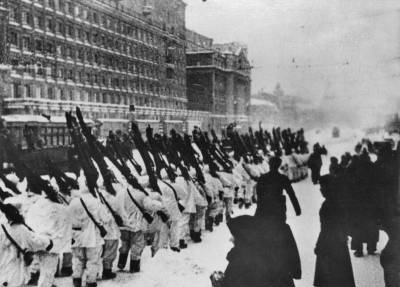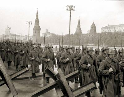 | <<<Битва за Москву>>> Битва под Москвой занимает особое место в истории войны Германии против СССР. Она характеризовалась крайней напряженностью, сложностью и огромным размахом боевых действий. Сражение за столицу Советского Союза продолжалось более шести месяцев и велось на фронте протяженностью около 2 тысяч километров. Основным рубежом сопротивления на подступах к Москве стала Можайская линия обороны. Всего на этом рубеже от "Московского моря" до слияния р. Угра с Окой (230 км) в составе четырех советских армий насчитывалось лишь около 90 тысяч человек. Тяжелые бои шли и в районе Калинина. Однако немецкие войска оказались неподготовленными к успешным действиям в распутицу и при понижении температуры. Потери группы армий "Центр" только с 1 по 17 октября составили 50 тысяч человек. План операции "Тайфун" не был выполнен. Группа армий "Центр" не смогла прорваться к Москве ни на одном из участков фронта. С 16 ноября по 5 декабря в ходе второго этапа наступления на Москву немцы потеряли свыше 153 тысяч убитыми, ранеными и обмороженными.  Еще в ходе немецкого наступления на Москву советское Верховное Главнокомандование приступило к подготовке контрнаступления. Советские войска переходили в контрнаступление в условиях, когда численное превосходство в людях, артиллерии и танках было еще на стороне противника. Немецкая разведка не сумела вовремя выявить сосредоточение крупных сил советских войск, предназначенных для контрнаступления. Командование группы армий "Центр" до последнего дня считало, что советские войска обессилены и у них нет резервов. Оно было застигнуто врасплох. Столица казалась немцам близкой и досягаемой. В те, решающие для страны, дни со страниц газеты «Красная звезда» прозвучали слова политрука 316-й стрелковой дивизии В.Г. Клочкова: » Велика Россия, а отступать некуда — позади Москва».